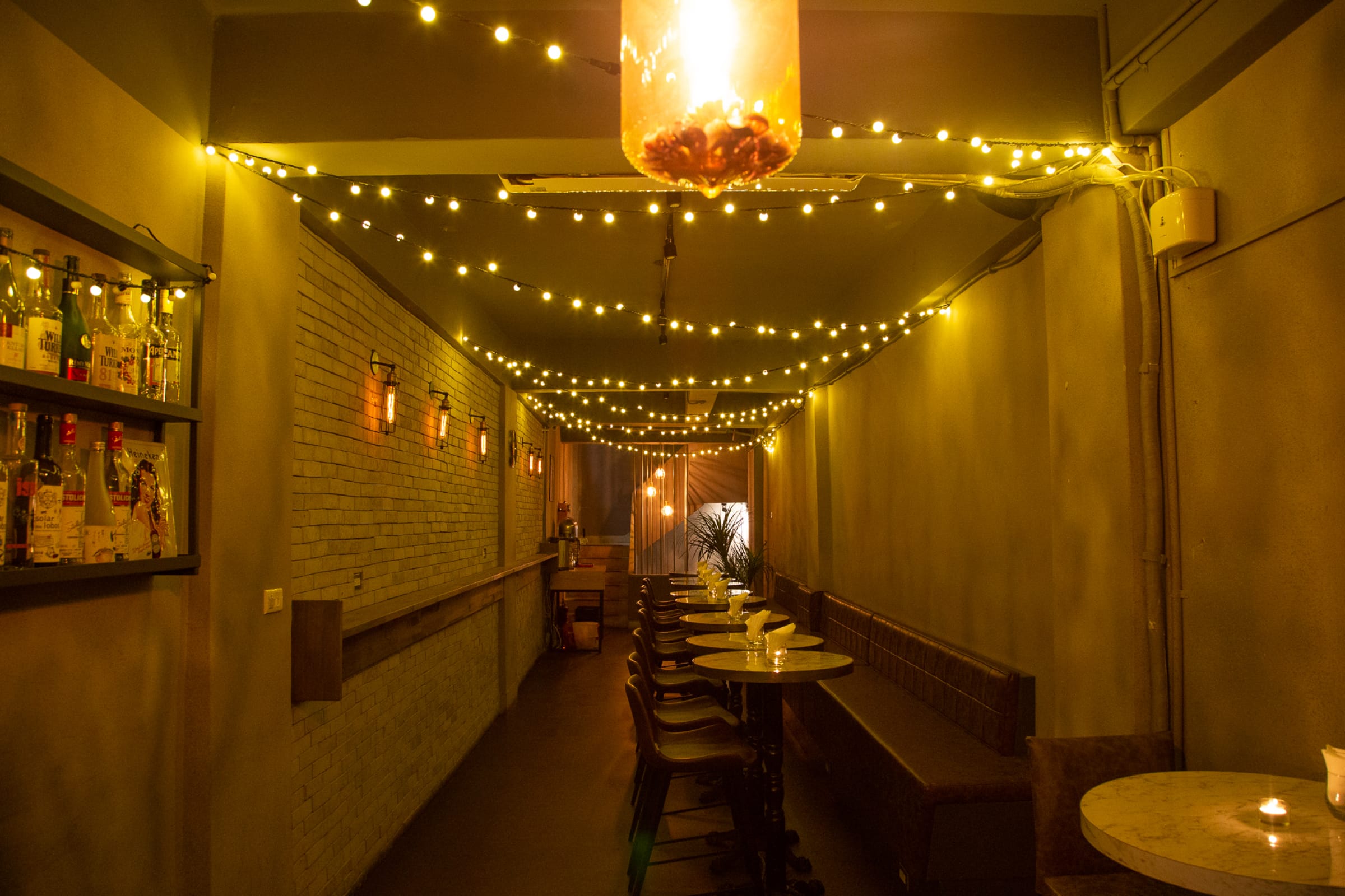 二樓、三樓則是座位區,以用餐的客人爲主,最適合三五好友相約下班後聚會了,而三樓的沙發區則是假日人多才會開放,同時這裡也很適合妞妞們包場慶生、求婚、公司聚會等等,20幾個座位不用很多人就能包場,廣闊的獨立空間完全不用擔心其他人打擾,從美食到美酒通通一應俱全!美式的磚牆和復古的裝潢擺設和閃閃發光的小燈,就連拍照起來也好看呢~