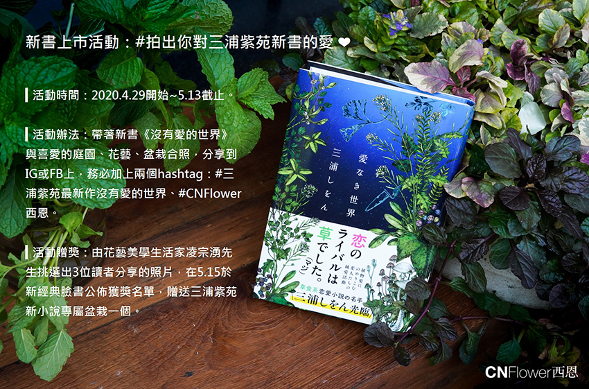 登入會員後留言告訴妞新聞:「三浦紫苑植感新作《沒有愛的世界》,主角本村紗英熱愛的研究對象是哪種「模式生物」呢?」,即可取得抽獎資格。